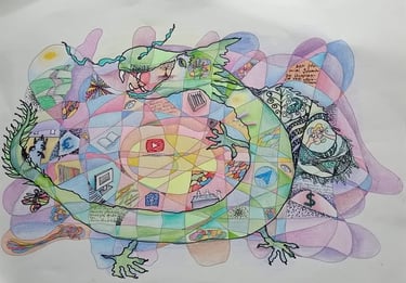 Tai mano praeitų metų piešinys. Aš planavau ką aš norėčiau nuveikti kitais metais. Netgi konkretaus plano neturėjau, nes nežinojau kaip daroma tai, ko aš noriu pasiekti. Metų bėgyje man į rankas atėjo kvietimai dalyvauti reikalinguose mokymuose, atsirado padedantys man žmonės, nukreipiantys tikslo link.